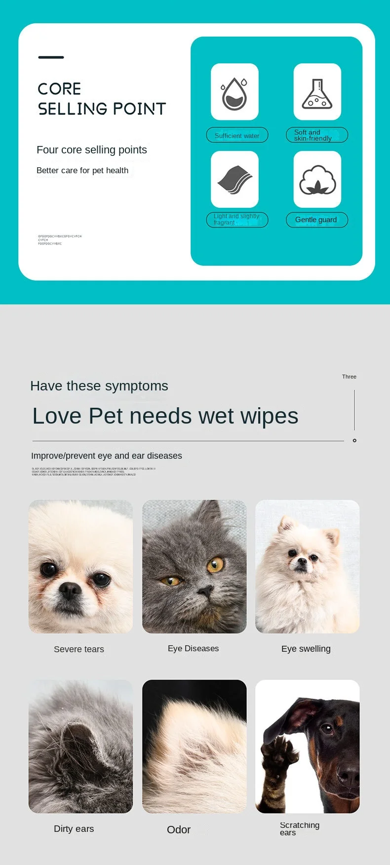 150Pcs Pet Wipes Dog Cat Eyes Ears Cleaning Paper Towels Tear Stain Remover for Puppy Kitten Cleaner Grooming Supplies Wet Tissue Sheets