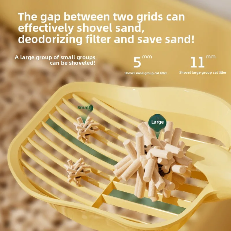 Daily litter box cleaning: fine mesh sifting design quickly separates clean litter from waste; long handle allows easy operation without bending.