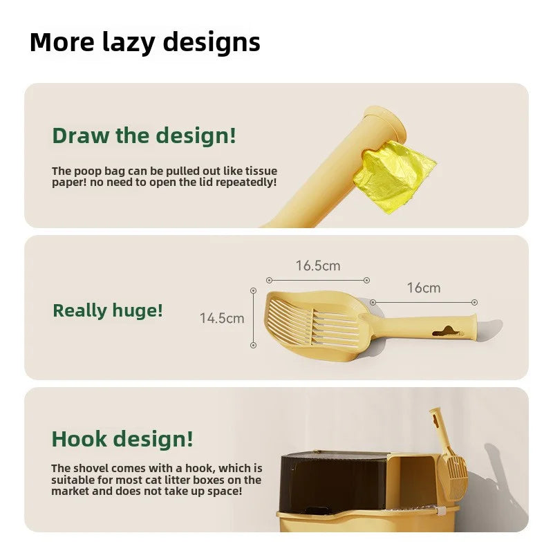 Cat owners valuing cleaning convenience; built-in trash bag directly contains waste, avoiding secondary pollution for hygienic use.