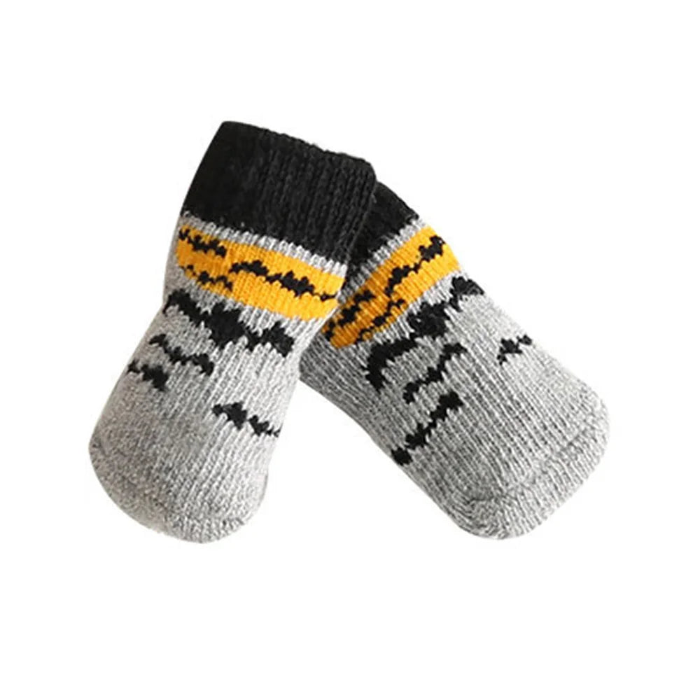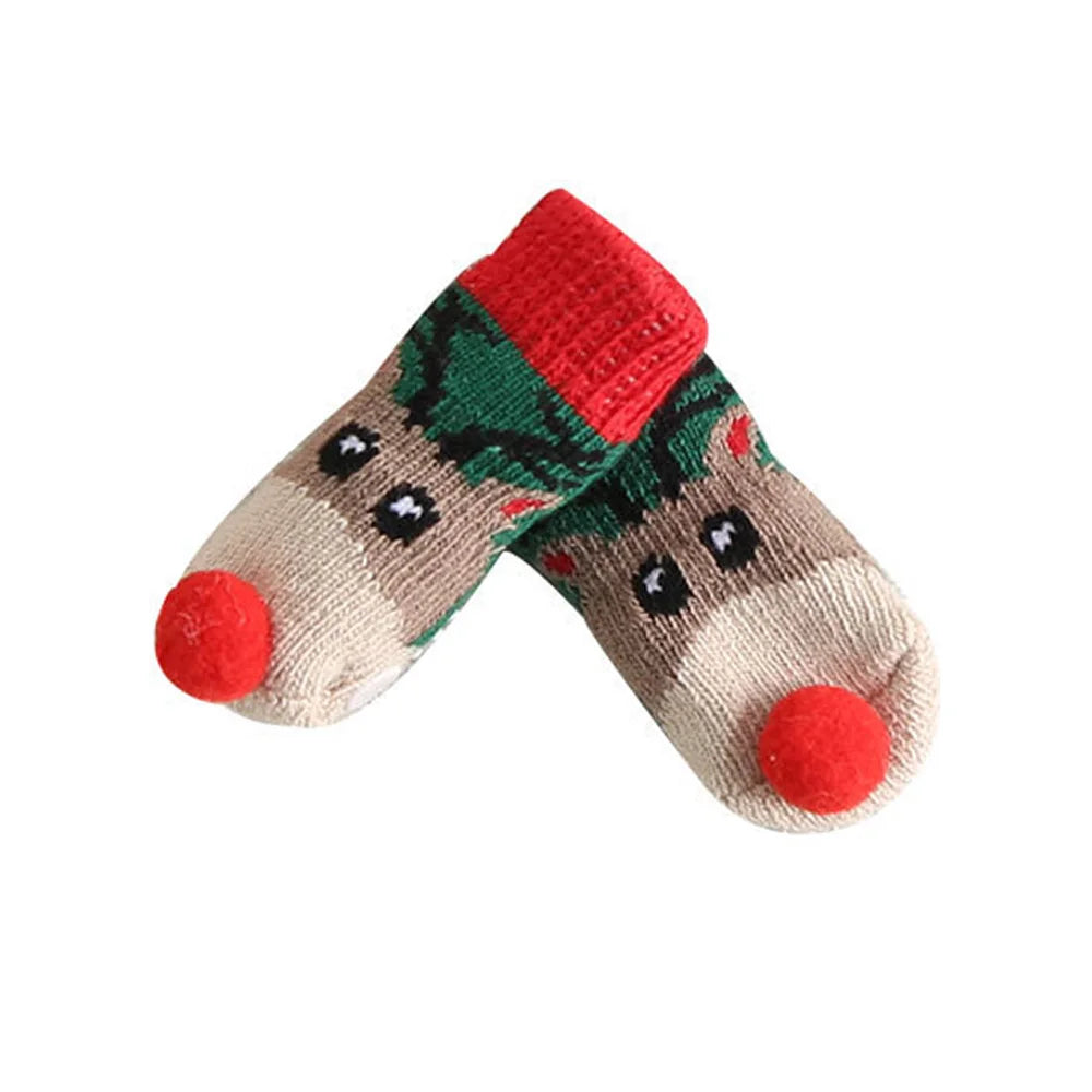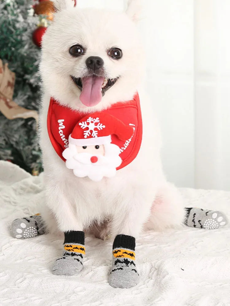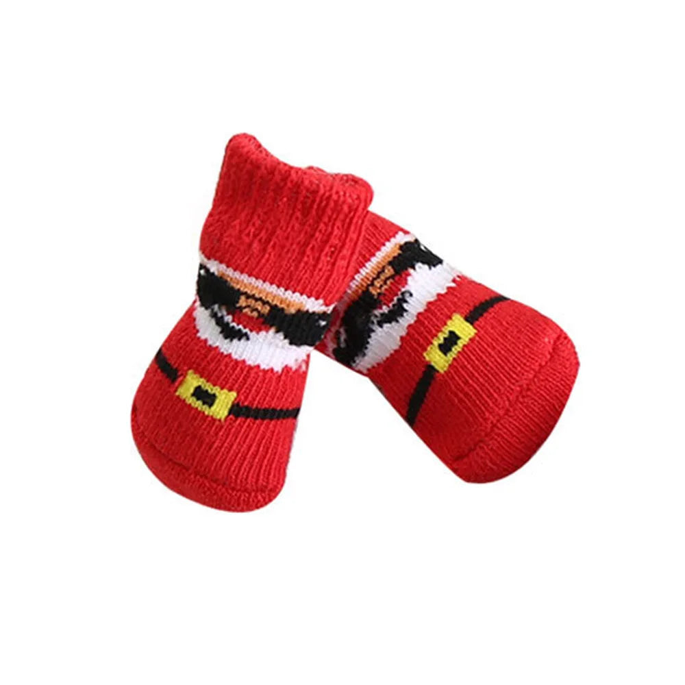 4Pcs Non-Slip Pet Christmas Socks Set Small Dogs Anti Slip Cat Socks Christmas Pattern Foot Covers Dog Cat Socks Woven Cute