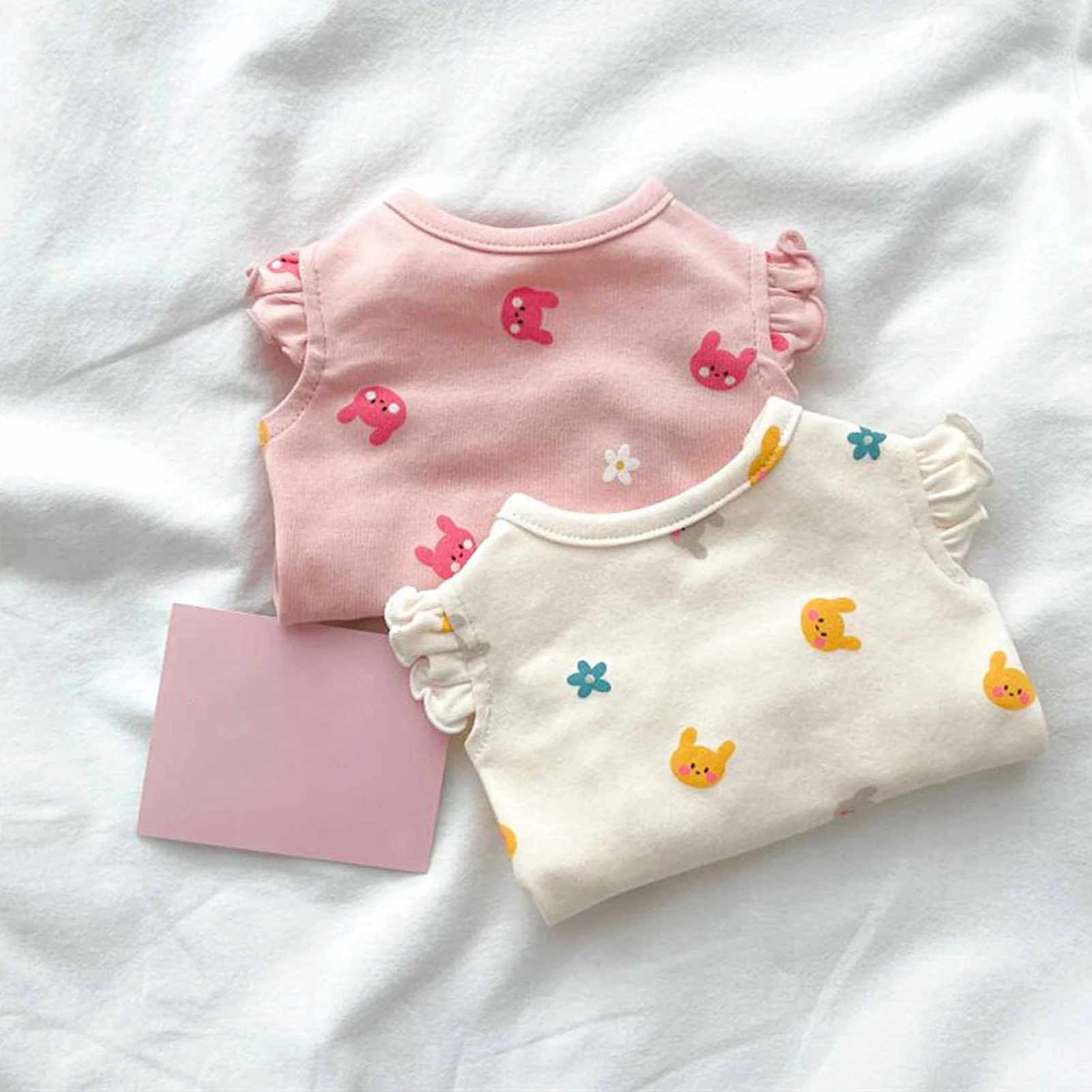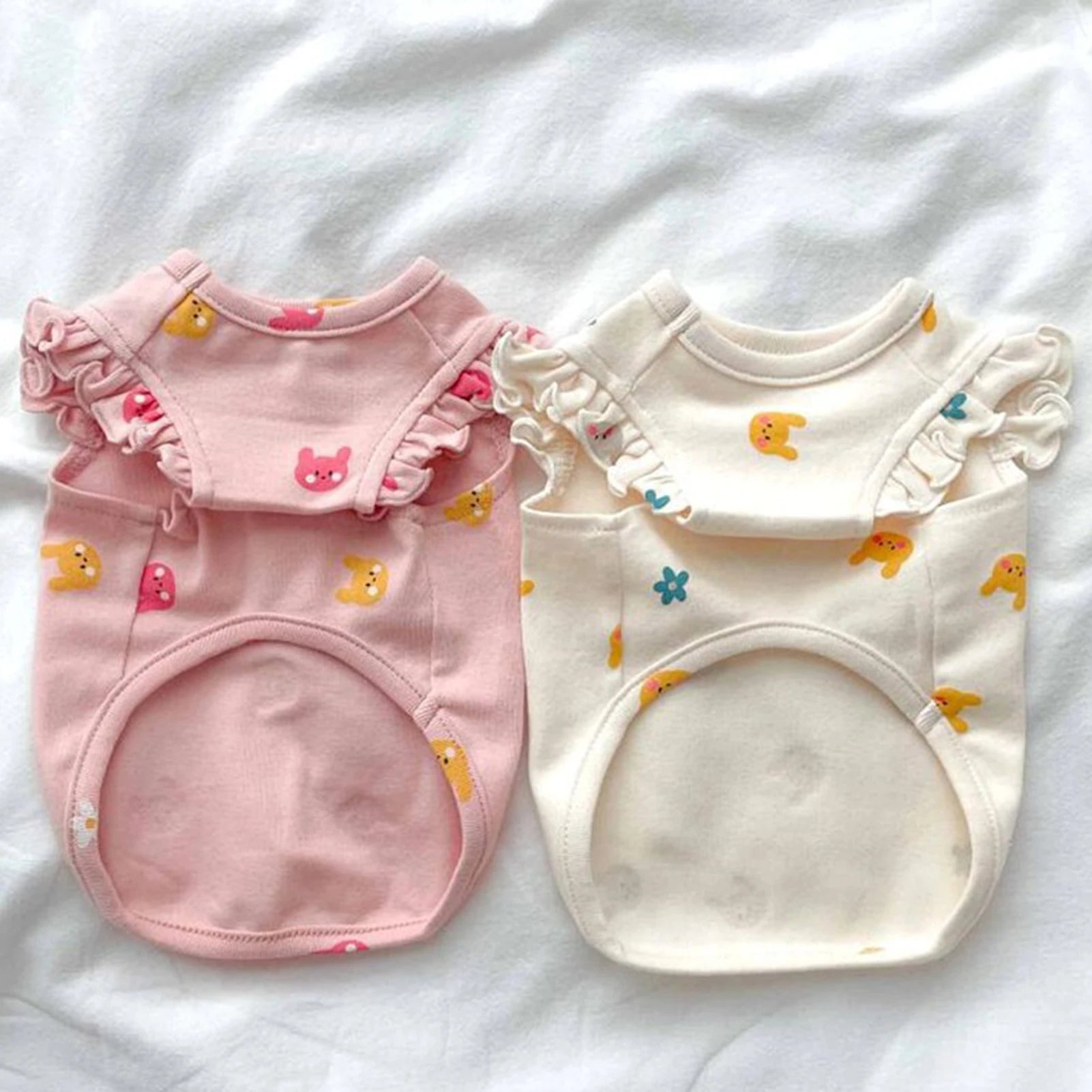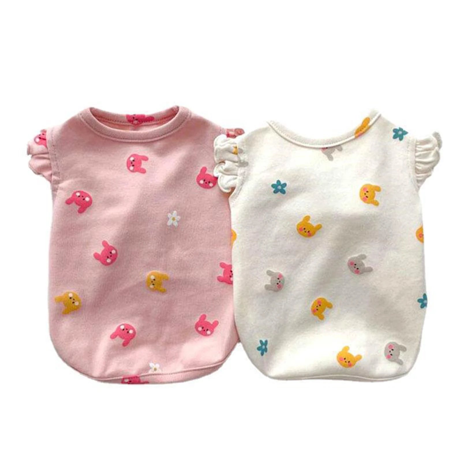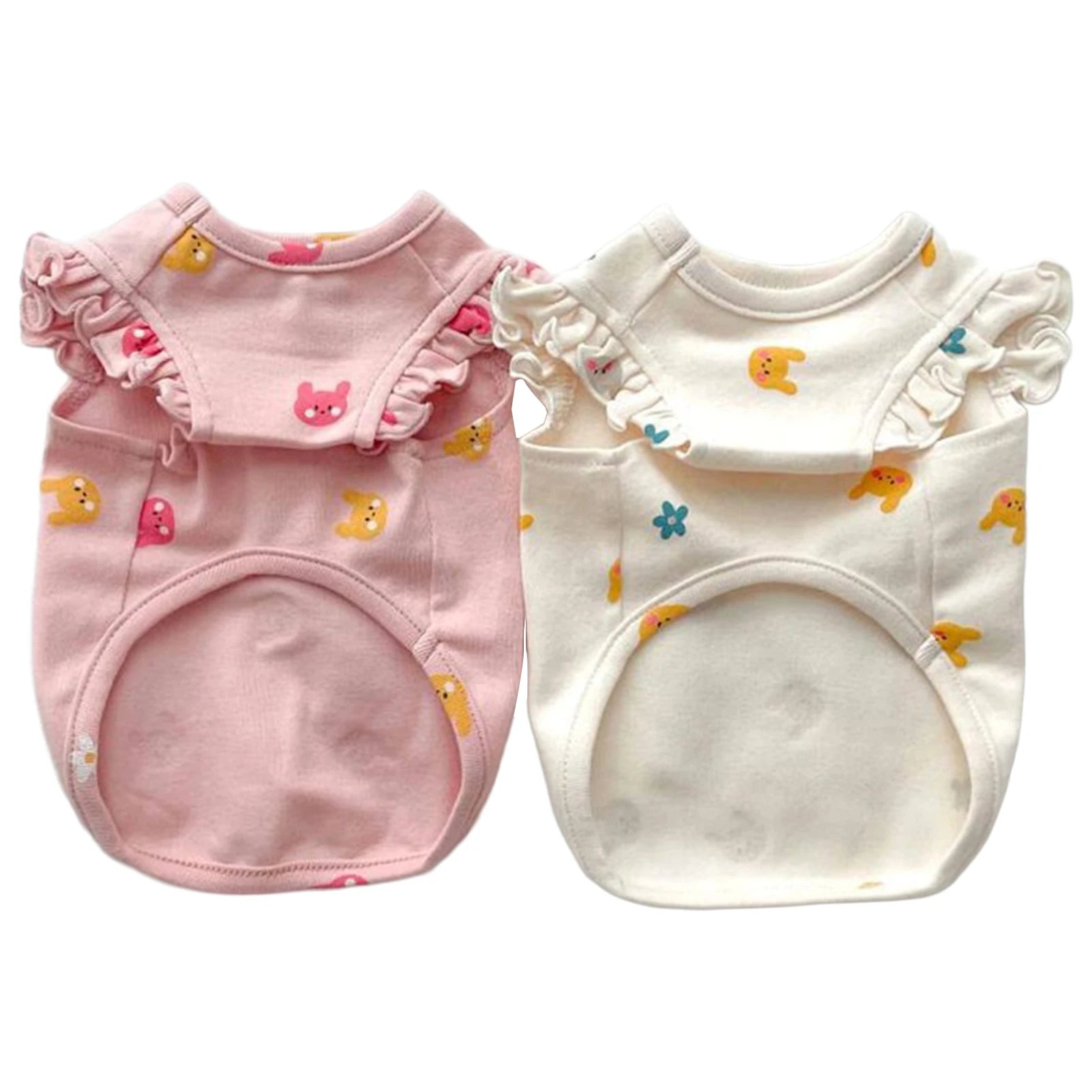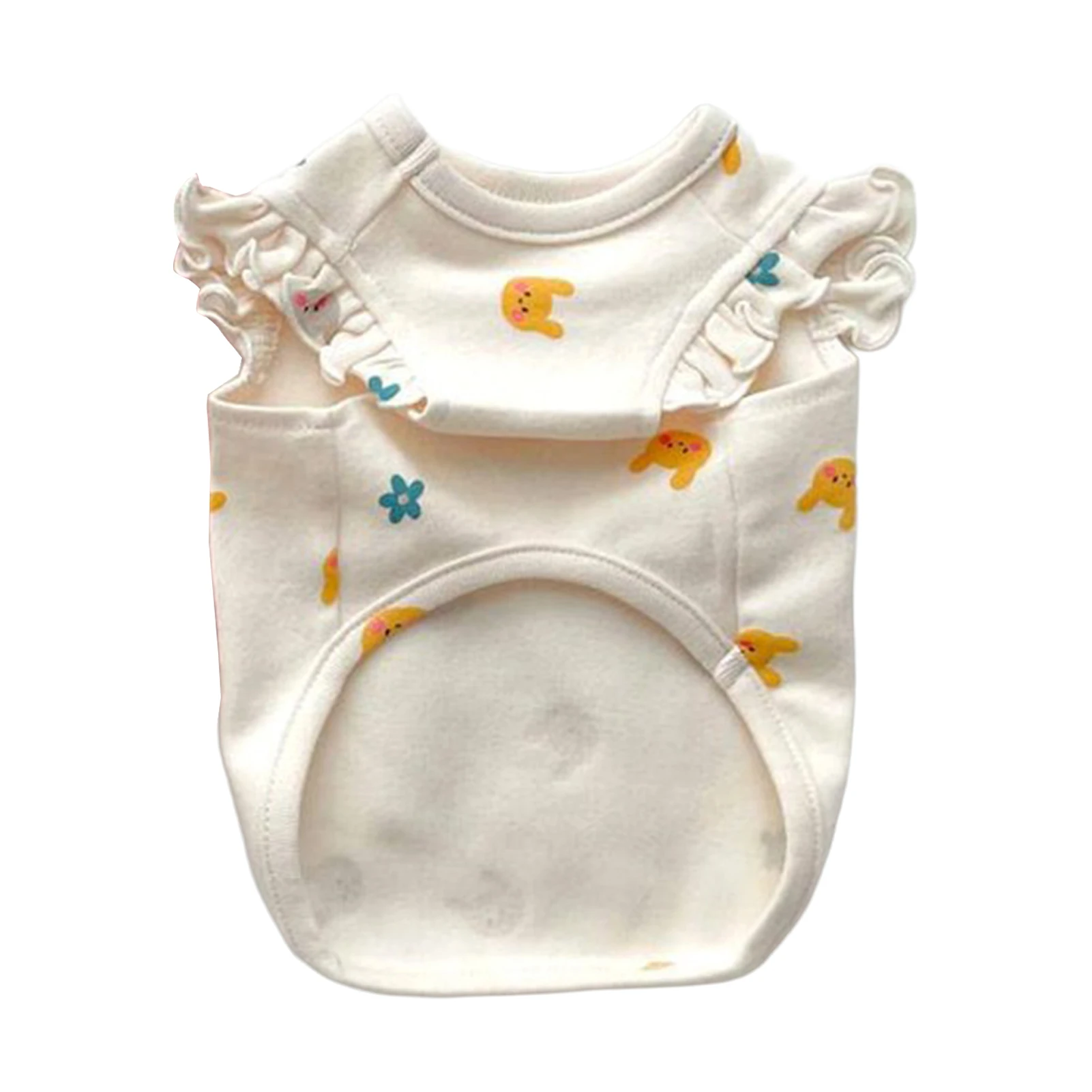 Rabbits Flowers Bear Embroidery Bodysuit: Adorable and functional, this bodysuit features cute embroidery designs like rabbits, flowers, and bears. Ideal for small dogs and cats, it's lightweight and perfect for young pets.