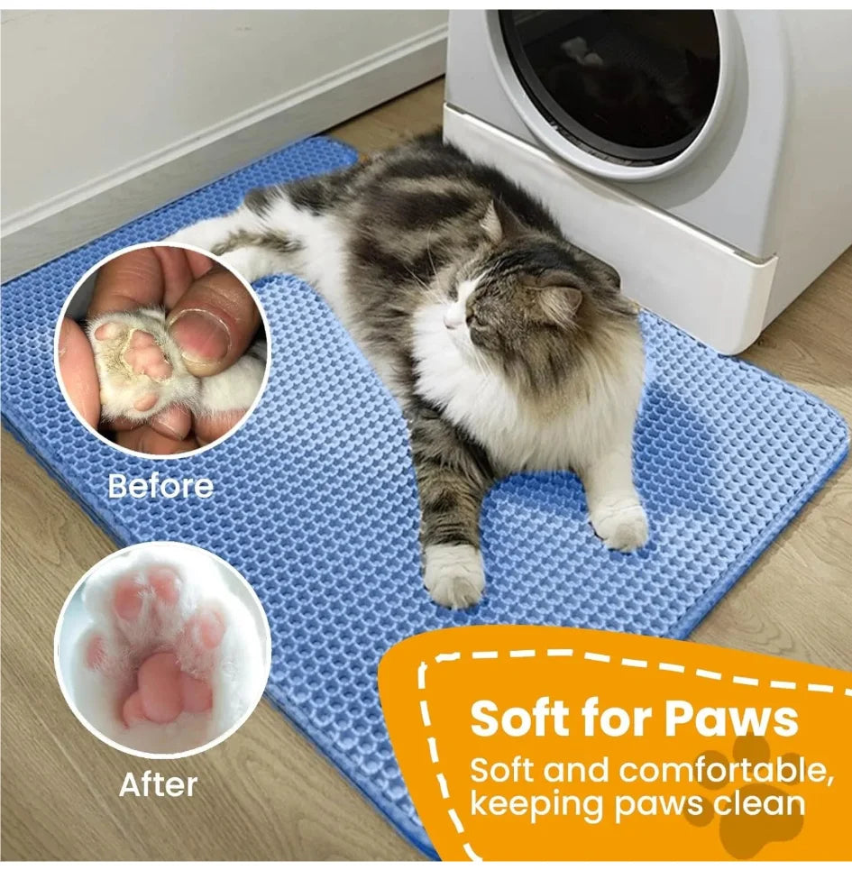 Waterproof and Urine-proof: The litter box mat is waterproof and urine-proof. The bottom layer and seal are completely sealed to prevent any liquid from leaking out, effectively protecting your floor and keeping home cleaner.