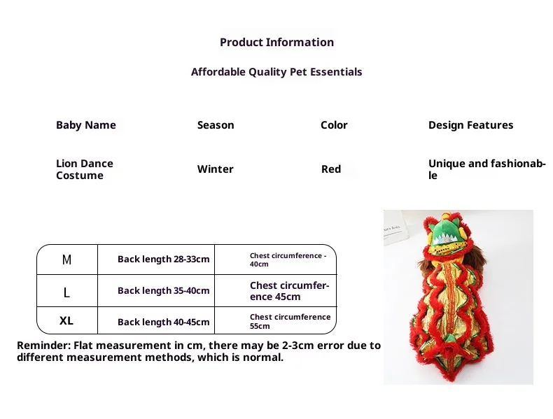 size: S (back length 23-28cm, recommended 3-5 pounds), M (back length 28-33cm, recommended 5-8 pounds), L (back length 35-40cm, recommended 8-12 pounds), XL (back length 40-45cm, recommended 12-18 pounds)