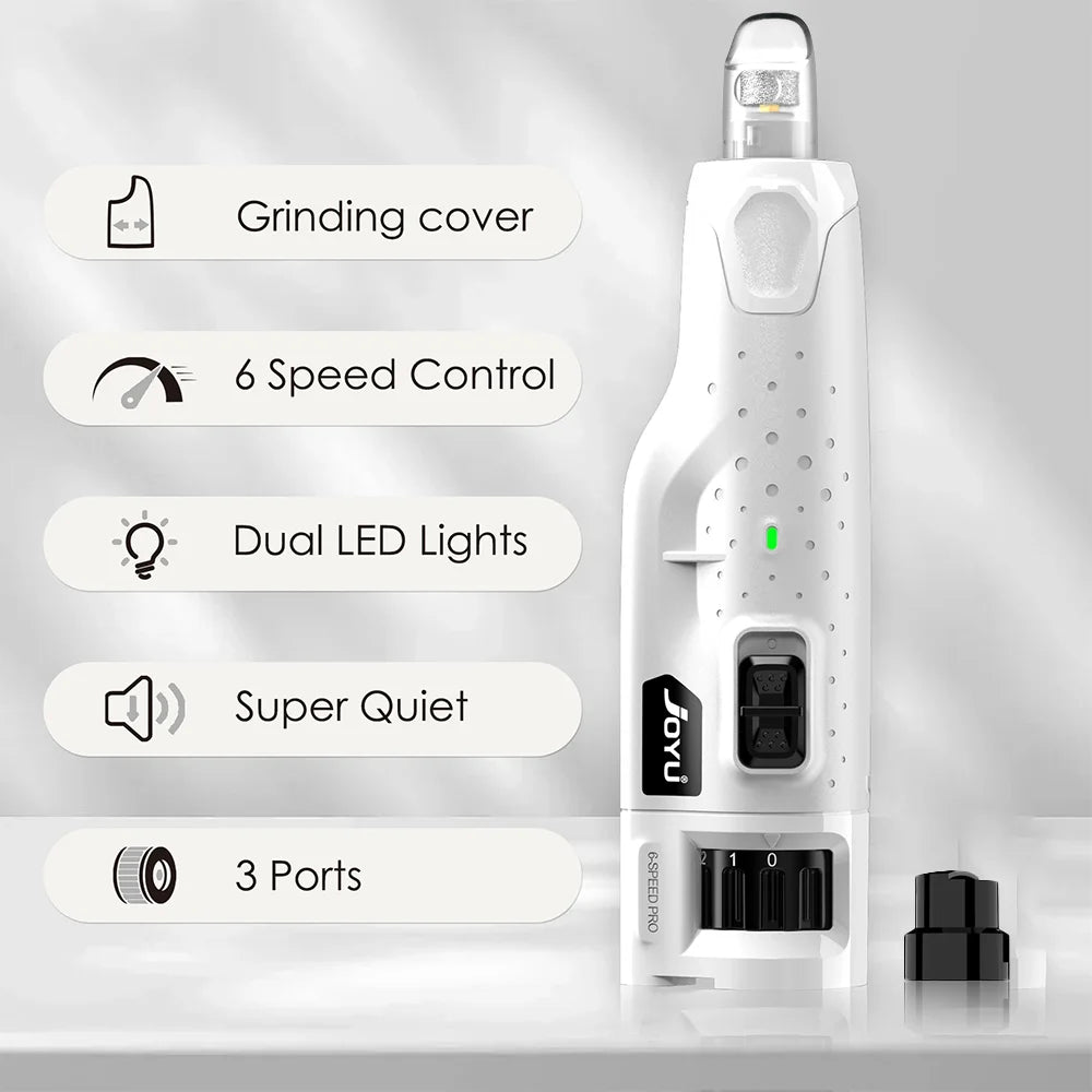 6 Adjustable Speed(7000-12000RPM), User-friendly to Both Experienced and Novice User: The Joyu Dog Nail Grinder features six adjustable grinding speeds. Utilize the direct power switch to turn off the device, ensuring that your desired speed setting is saved for future use.