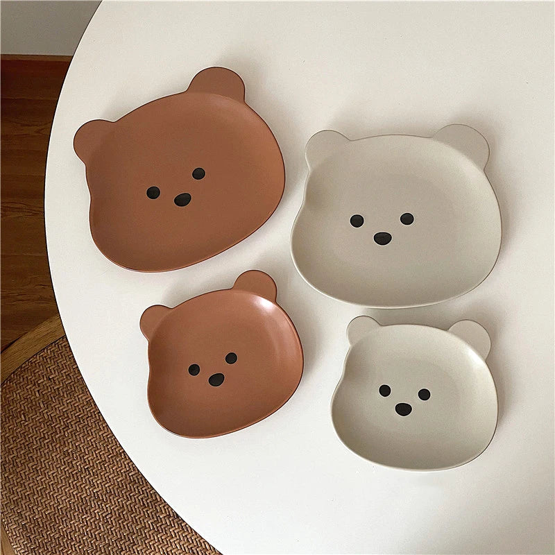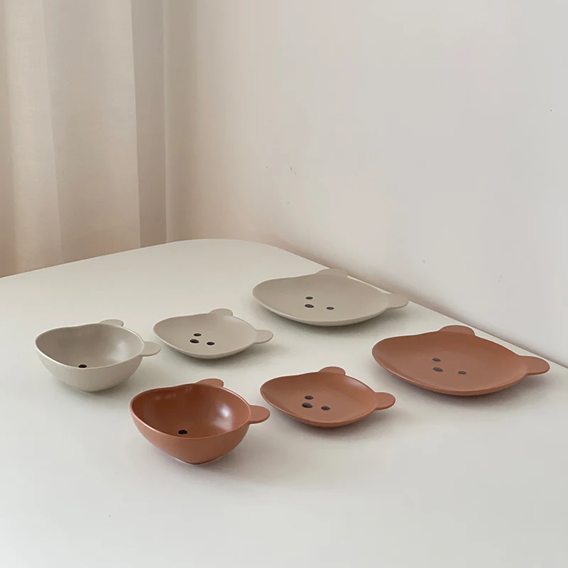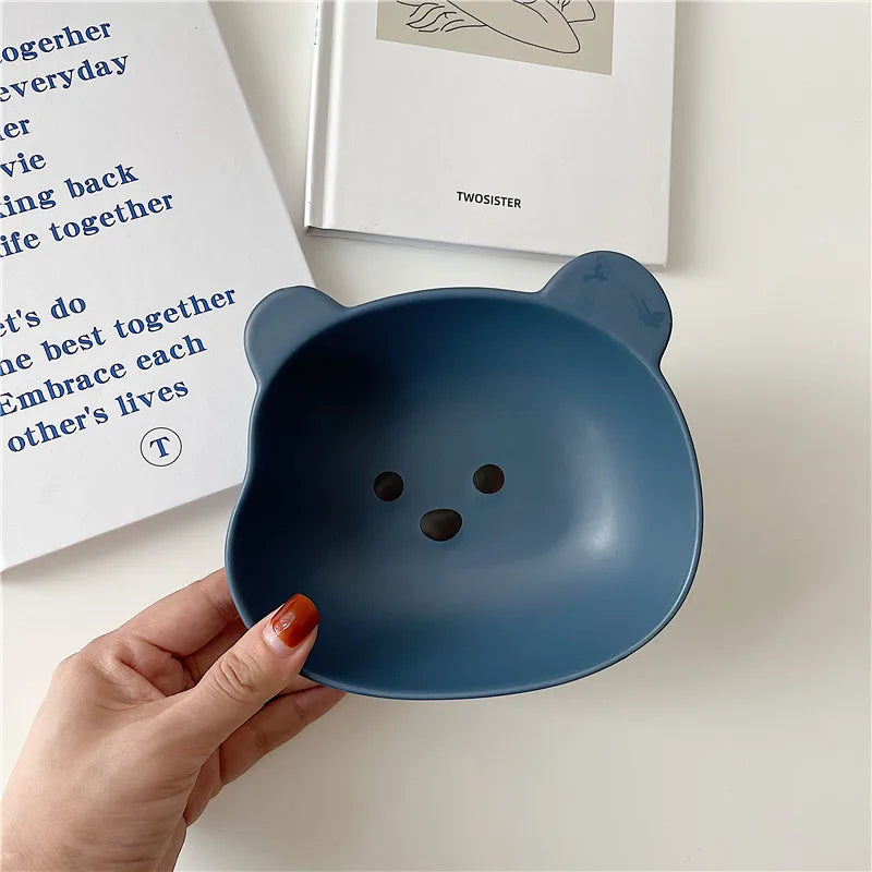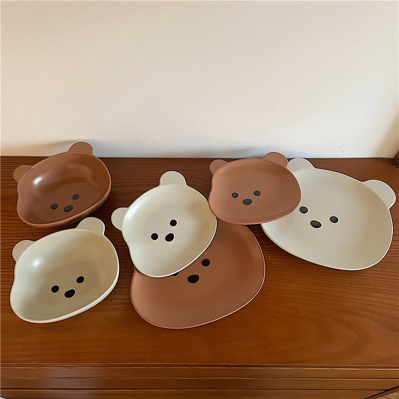 Kawaii Bear Bowl Plate Ceramics Cute Breakfast Salad Fruit Decorative Bowl Kitchen Korean Tableware Accessories For Kids Girl
