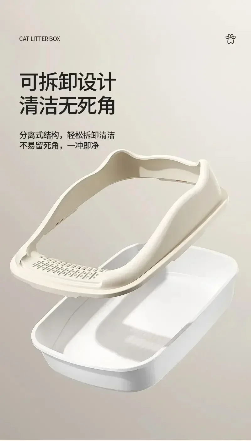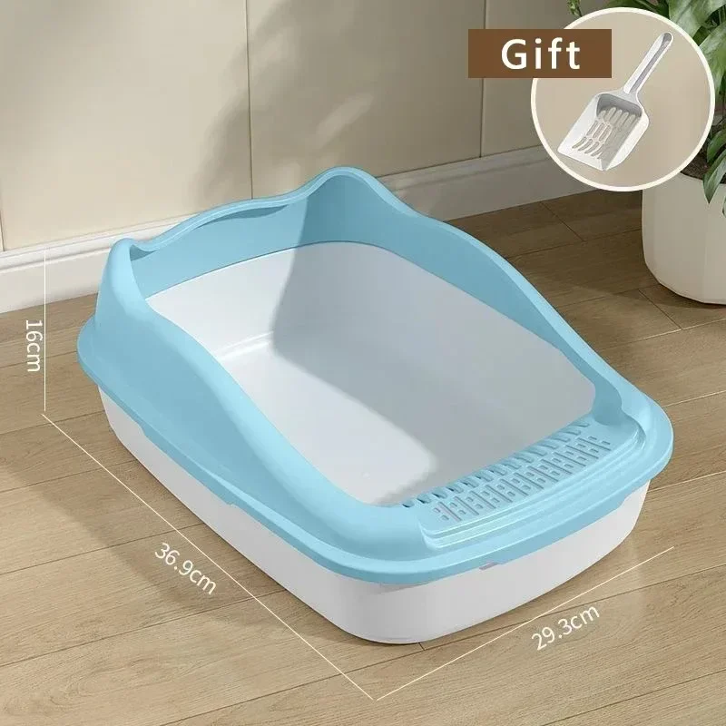 Our litter box with high sides is perfect for cat owners! With a simple structure and high sides, our litter box promotes air circulation and can be used for a long time. Suitable for cats of various sizes and breeds, it's the perfect addition to your home. Say goodbye to messy litter and hello to a clean living space with our litter box!
