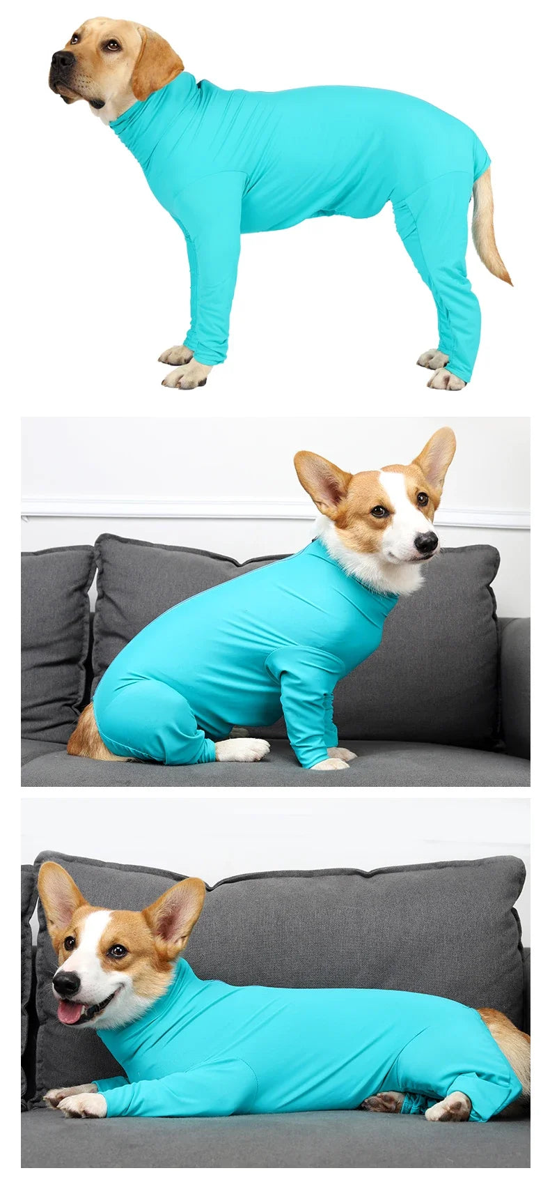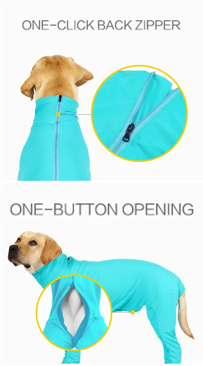 【Reduce Shedding】This full coverage dog recovery suit is designed to cover dog's entire body and all four legs, trapping shedding hair inside the suit for quick and easy cleanning.It's suitable for both female and male dog to wear in the house, car or anywhere you don't want leave dog hair.