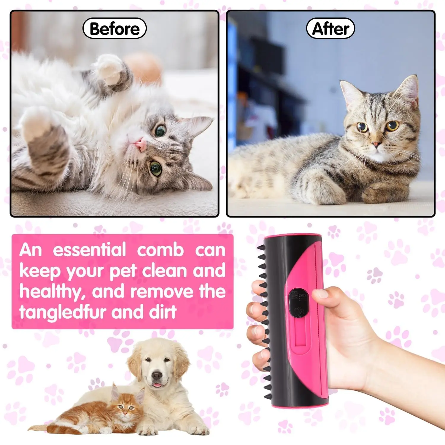 【 Grooming Pro Deshedding Brush】Say goodbye to loose hair and shedding with the Grooming pro deshedding brush.Designed to remove undercoat and loose fur gently, it helps restore your pet’s coat to a healthy, smooth shine. Its ergonomic grip ensures a comfortable experience for both you and your furry friend. You can use our grooming brush for cats, dogs, rabbits, horses, and other long or short-haired pets.