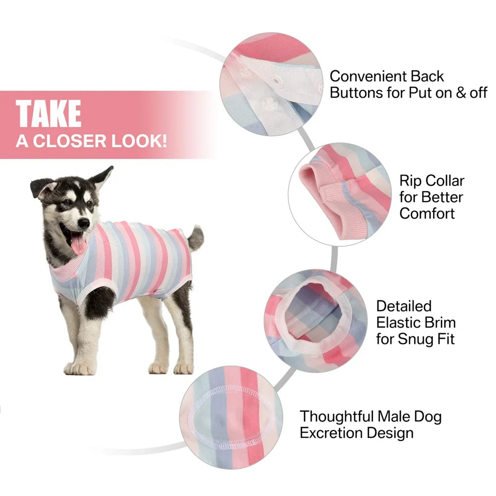 Multiple Uses: The dog surgical vest not only can be worn as dog bodysuit post surgery, but also as pet's usual home wear pajamas. The bright colors of this dog costume will make your dog more fashionable.