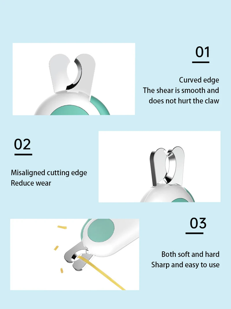 • LED Light :The built-in LED light illuminates your pet's nails, making it easier to see and trim them.