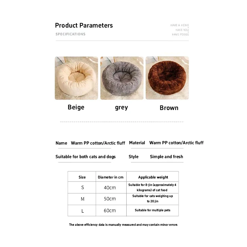 Round Softness Pet Bed Bed Household Washable Pet Products Thick Warm Soft Dog Bed Sofa Cushion Winter Dog Cat Accessories Decor