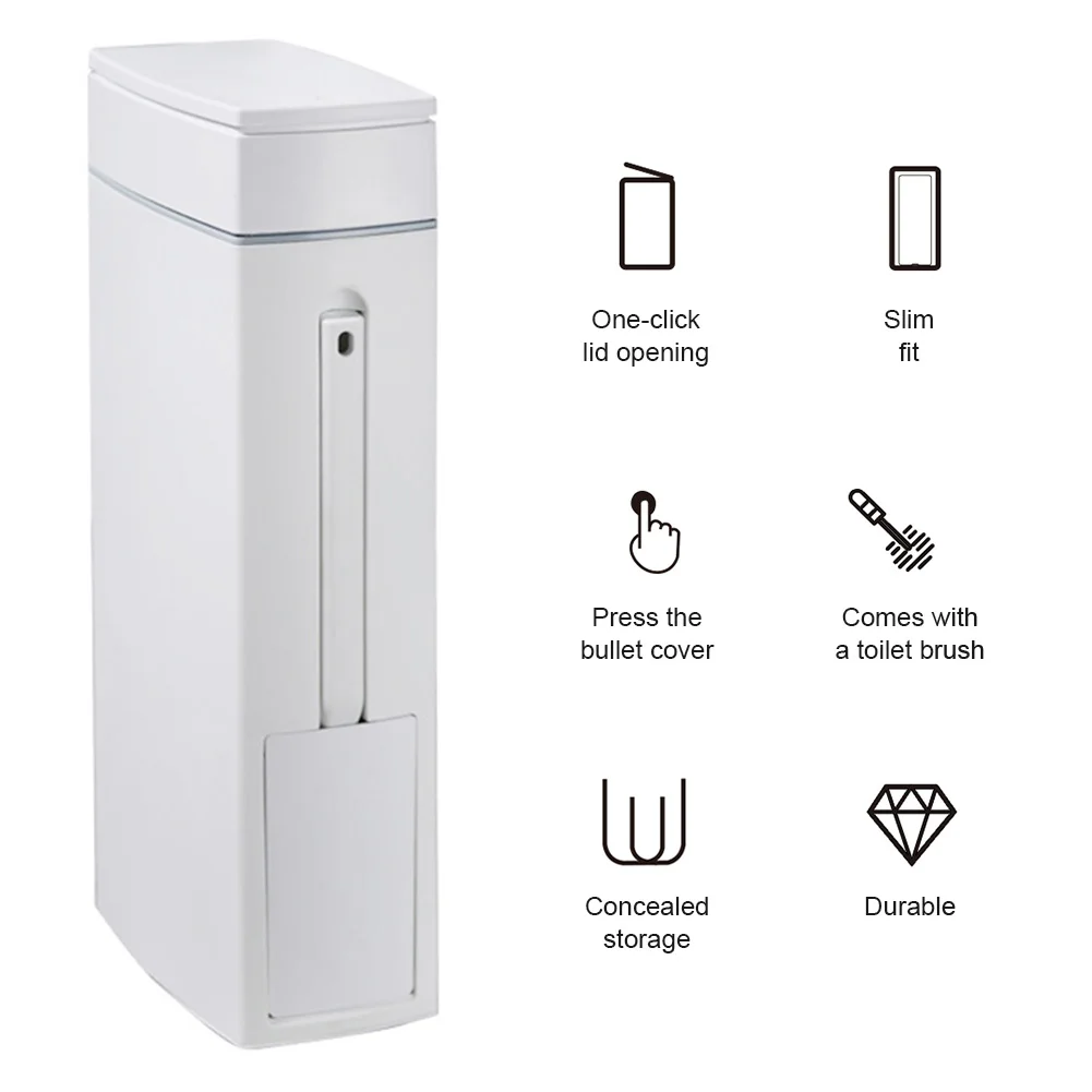 Slim Trash Can Plastic Waste Basket with Cleaning Brush and Lid Bathroom Trash Can Garbage Bucket for Bathroom Narrow Space
