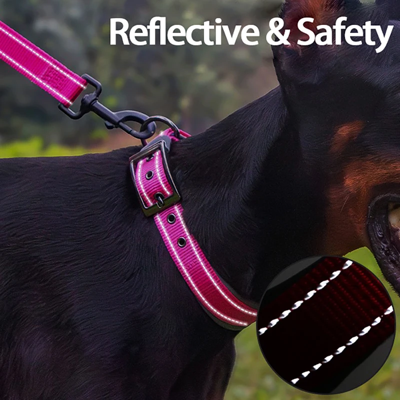 Double-Layer Webbing & Reflective Stitching - Highly reflective threads are woven around the collar for 360°all-round protection and great visibility in the dark; Our nylon dog collar with two-ply construction for extra durability, works for Large & extra large dogs with strong pulling