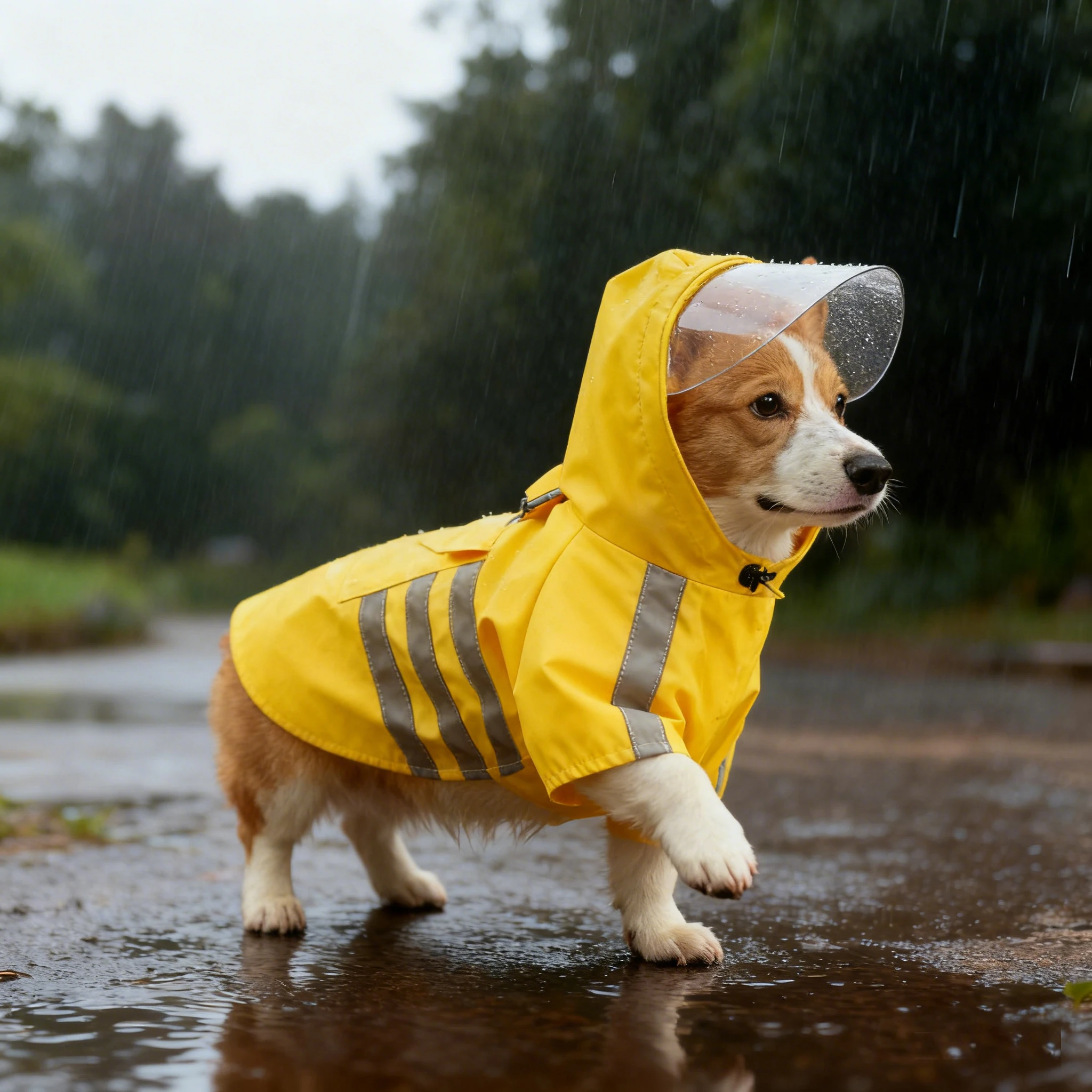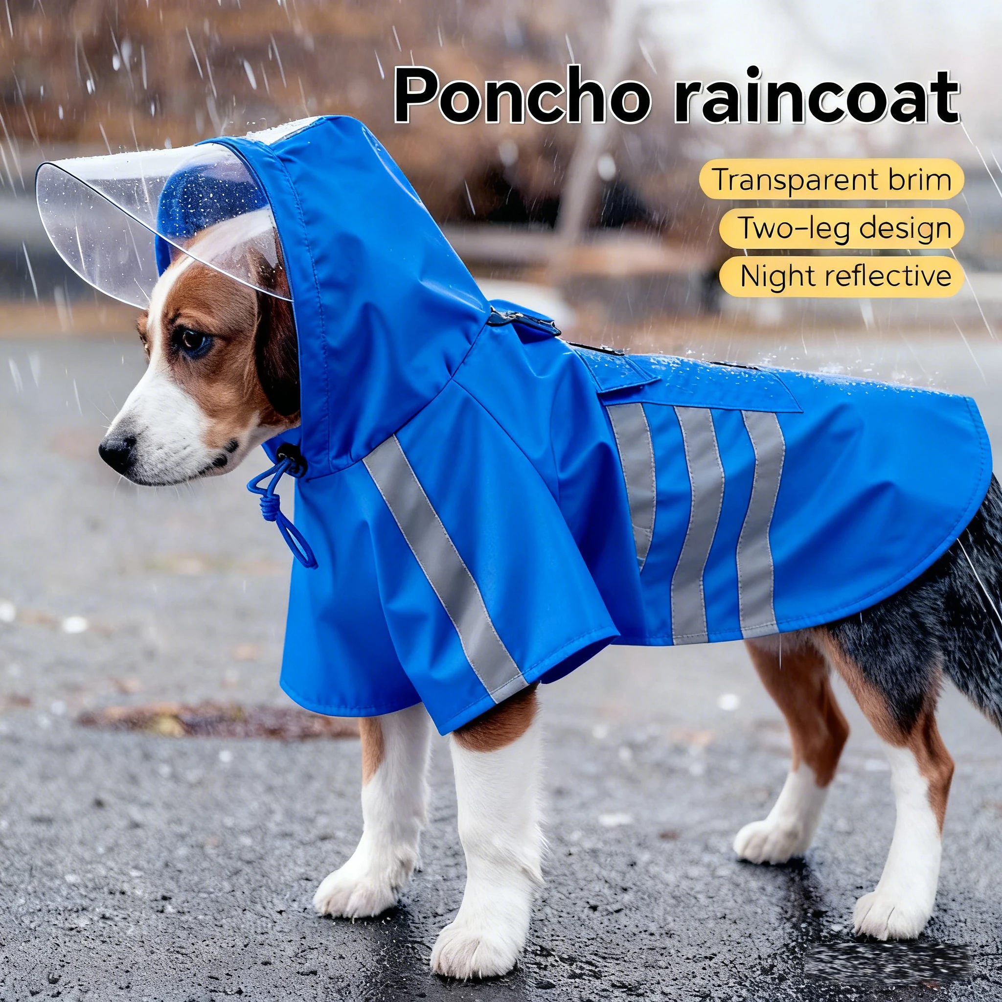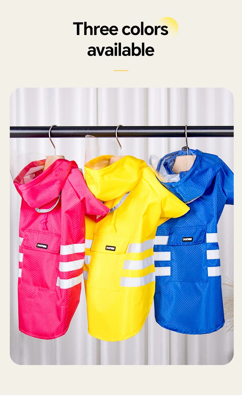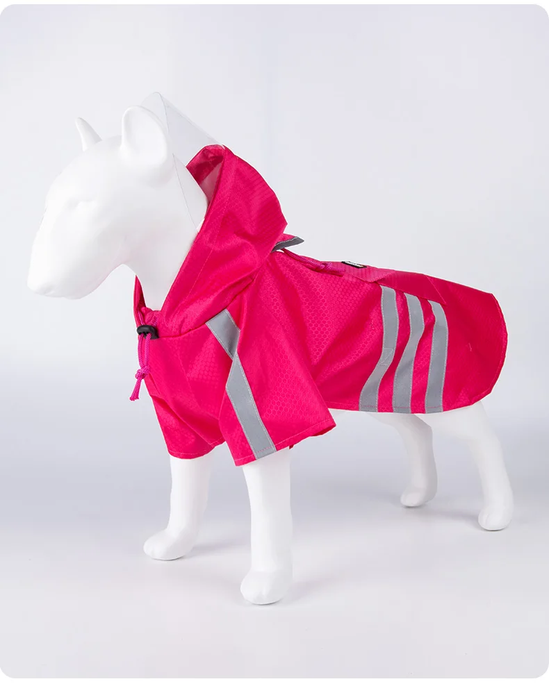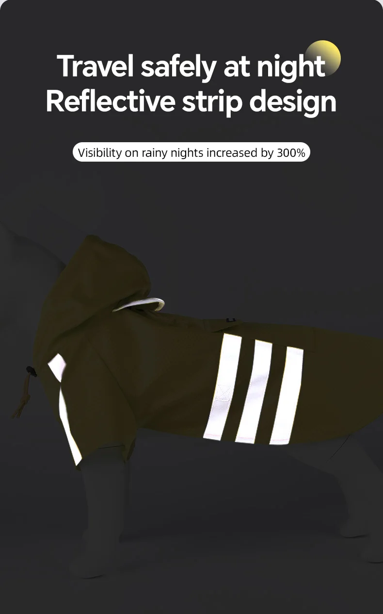 Crafted with reflective strips, this raincoat ensures your pet remains visible in low-light conditions, enhancing safety during nighttime walks.
