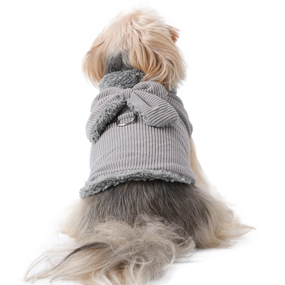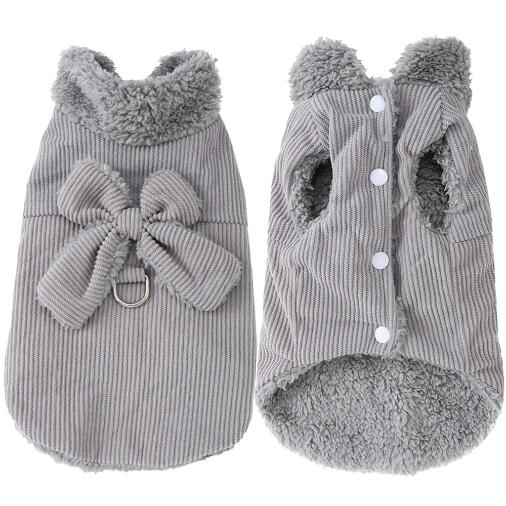 Winter Warm Cat Costume Corduroy Bow Puppy Kitty Coat With D-ring Cute Pet Jacket for Small Medium Dogs Cats Sphynx Pug Costume
